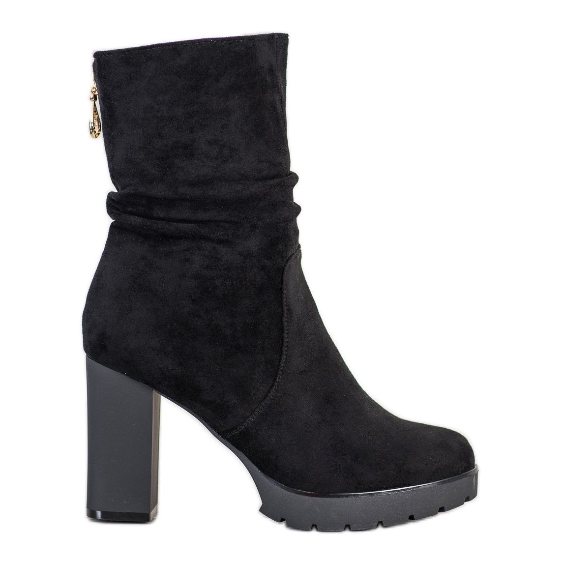 O isolamento interno garante calor e conforto mesmo em dias frios, e o zíper facilita a colocação e a retirada do calçado. O salto embutido e reforçado proporciona suporte adequado ao pé, e o salto fosco acrescenta um charme único. O salto bloco de 9,5 cm de altura combinado com a plataforma não é apenas atraente, mas também relativamente confortável, permitindo-lhe mover-se com conforto.