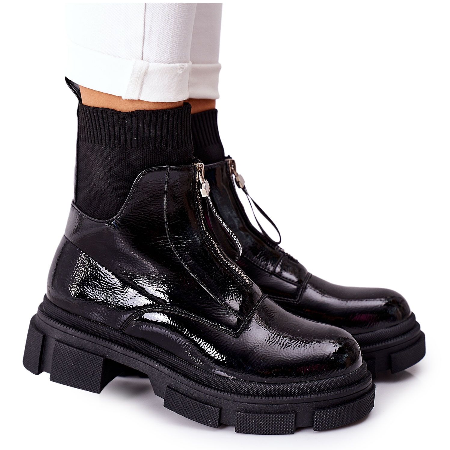 Apresentamos Botas de Cano Alto Chicago Pretas em Plataforma Maciça - a combinação perfeita de elegância e conforto. Essas botas extremamente estilosas são confeccionadas em couro ecológico envernizado, o que garante não só um visual atraente, mas também durabilidade.