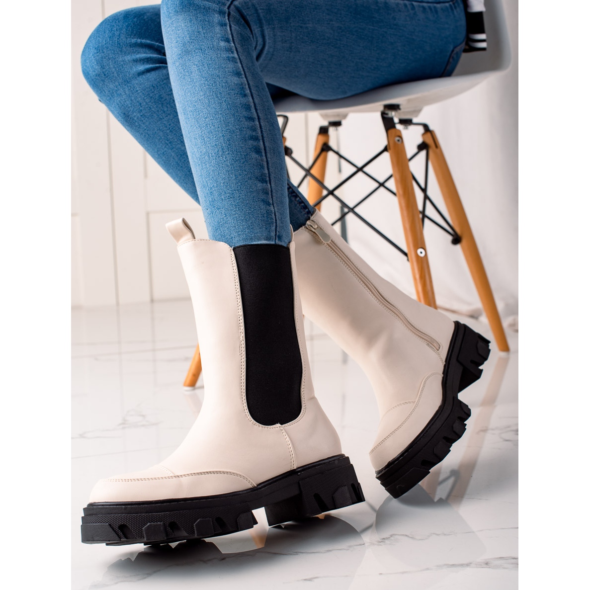 A cor bege faz com que as botas se encaixem perfeitamente em vários estilos - do casual ao mais elegante. Sem padrões, são uma excelente base para combinações criativas de moda. Além do valor estético, as botas são equipadas com um prático zíper, que facilita a colocação e a retirada.