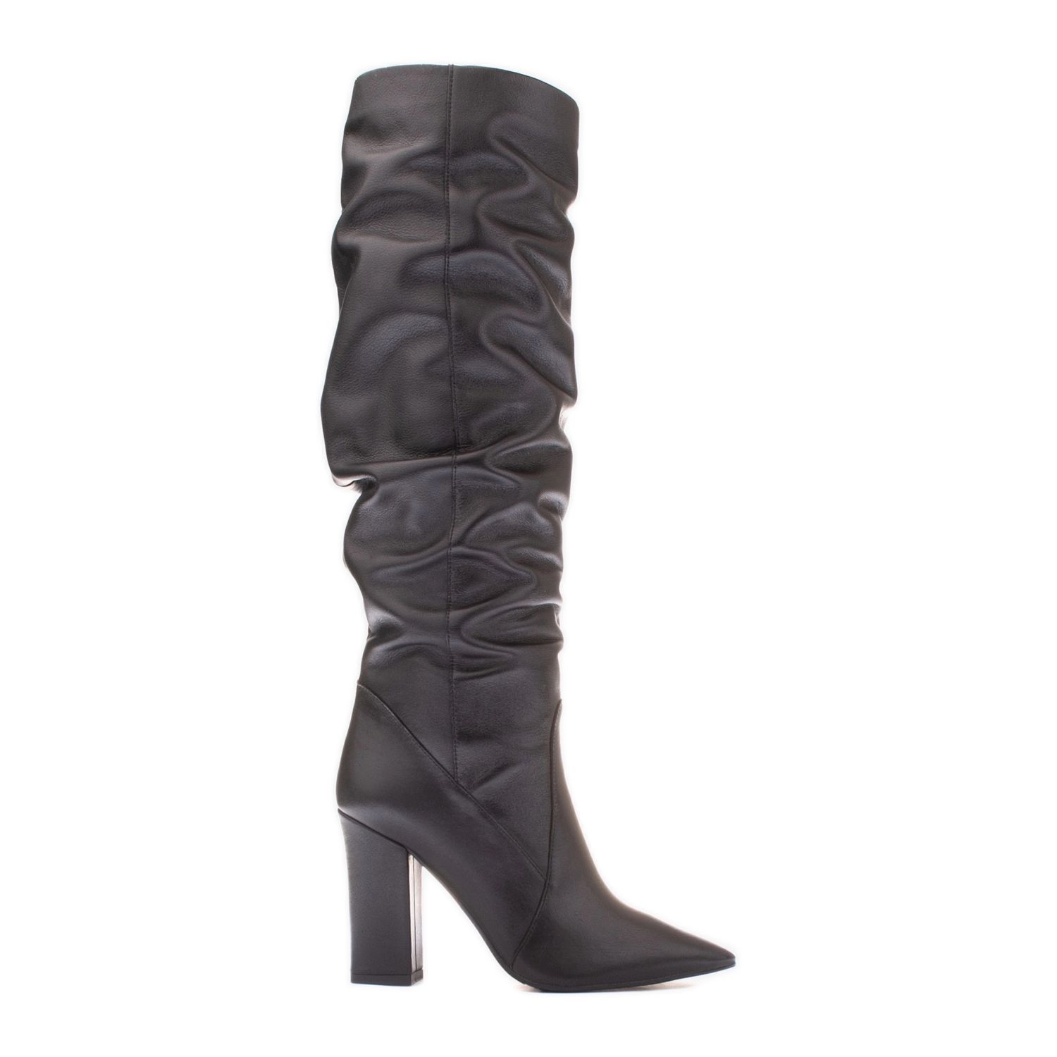 Marco Shoes Marco Shoes Botas altas pretas com babados feitas de couro macio preto