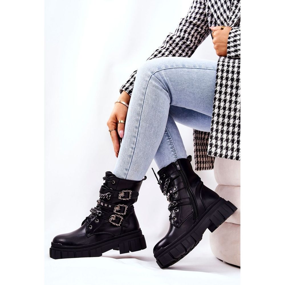 Detalhes: WS1 Botas amarradas com corrente com fivela preta reiloy preto