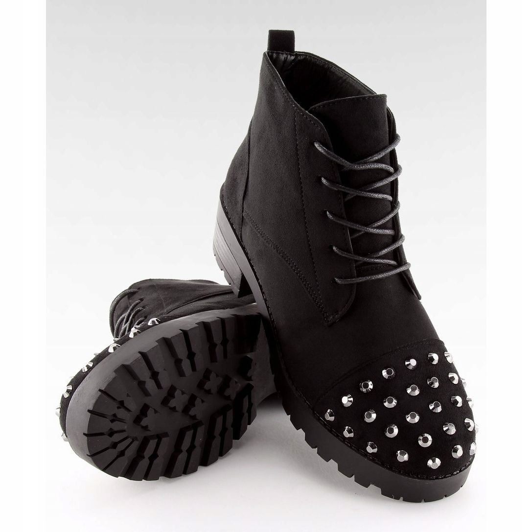 Oferecemos botins femininos exclusivos com cadarço na clássica cor preta que combinam conforto e estilo. O modelo Black 2017-10, de marca renomada, chama a atenção pelas vistosas tachas nos dedos que lhe conferem um caráter rock.