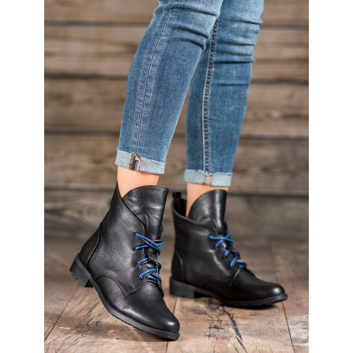 Uma vantagem adicional é a original encadernação dupla em renda, que confere aos sapatos um carácter único. A parte superior acima do tornozelo e o calcanhar macio integrado proporcionam excelente suporte e conforto de uso. A sola de plástico garante aderência e estabilidade, o que torna estas botas a escolha ideal para o uso diário.