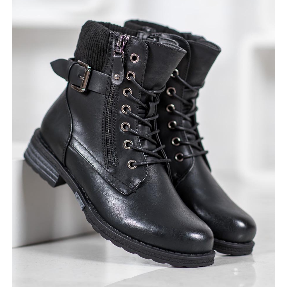 J. Star J. Star Botas amarradas em couro ecológico preto