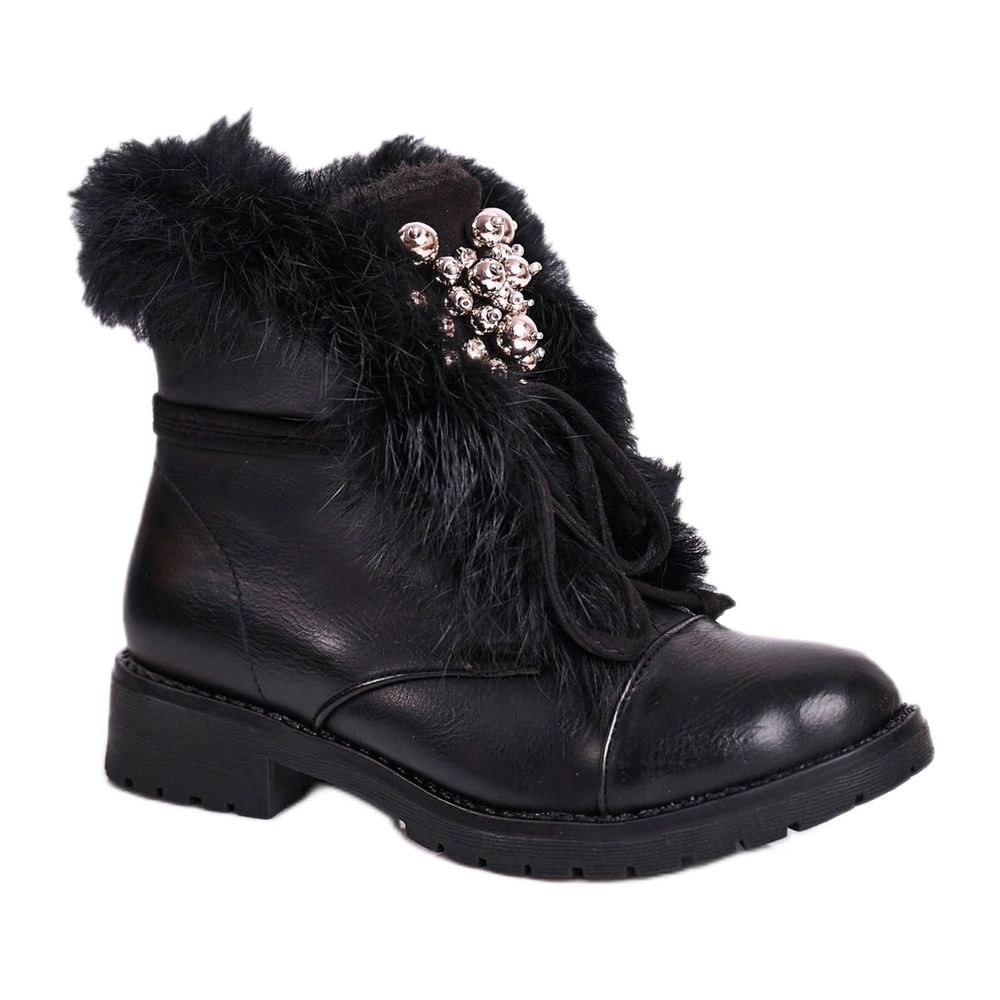 Detalhes: MSMG Botas aquecidas pretas infantis de pele CT900A Ella preto