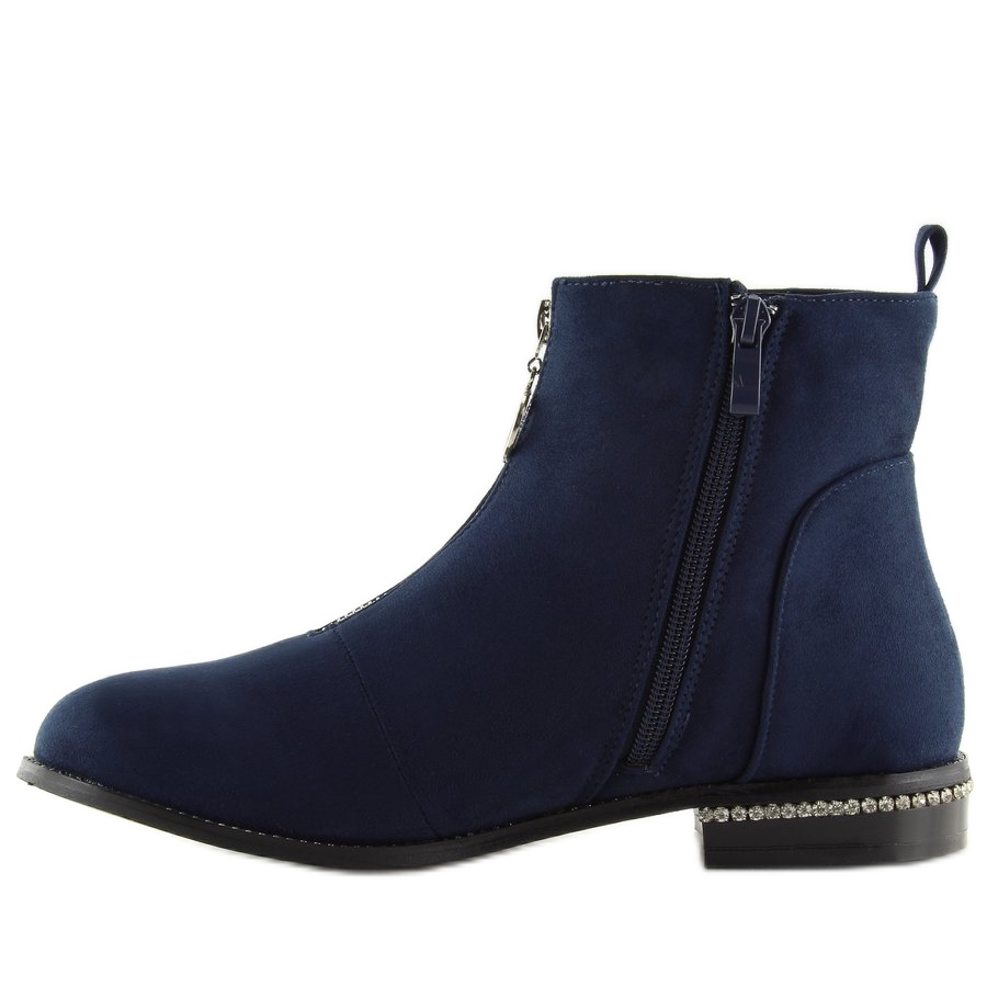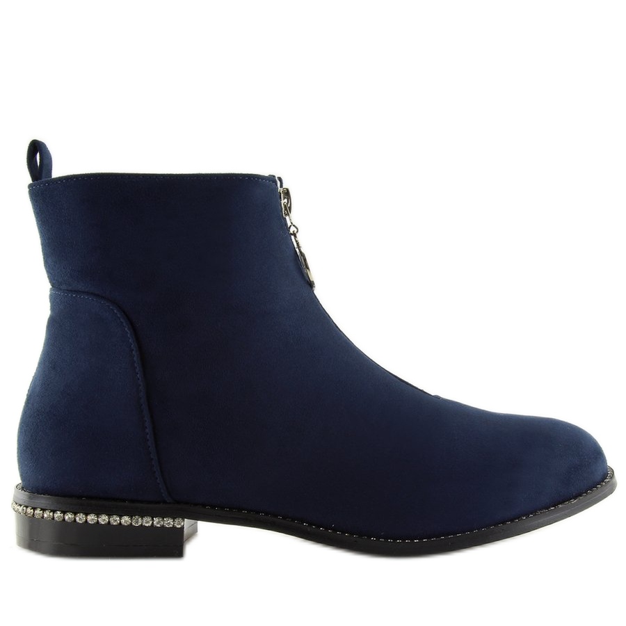 Descubra os exclusivos botins femininos azul marinho LL6300 Blue, que combinam perfeitamente a elegância com o conforto do dia a dia. Graças ao design original, estes sapatos são a escolha perfeita para os dias de outono. Possuem salto plano de 2 cm de altura, que garante conforto de uso o dia todo, e decorações sutis em forma de strass e zíper prateado na frente conferem-lhes um carisma único.