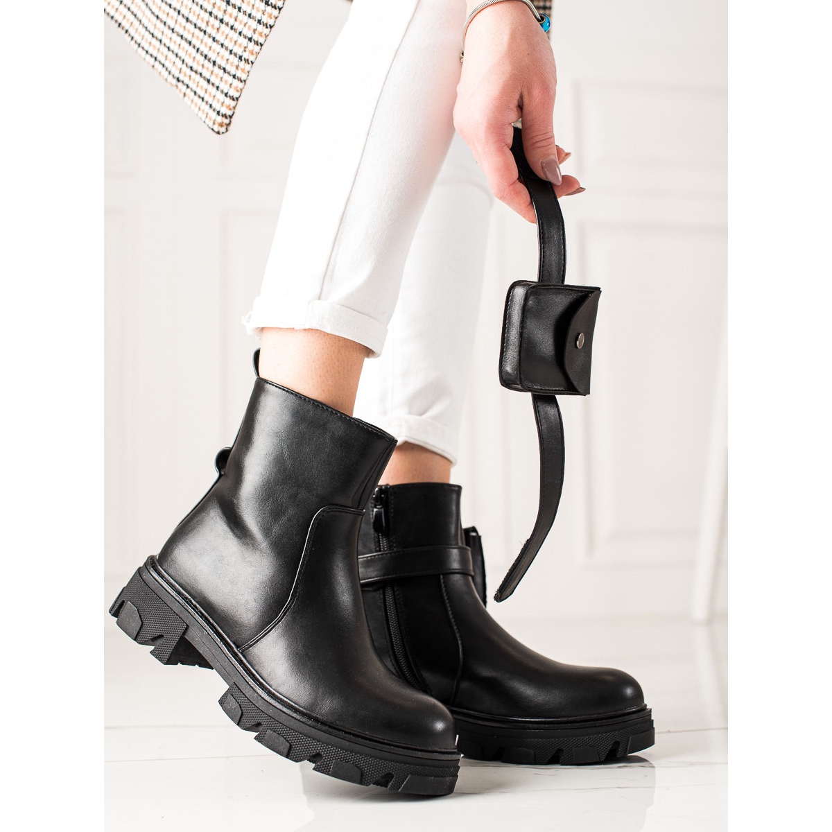 Descubra uma nova dimensão de conforto e estilo com os botins baixos com bolso TRENDI! Estas botas pretas da moda são o complemento perfeito para qualquer estilo do dia a dia, combinando design casual com funcionalidade.