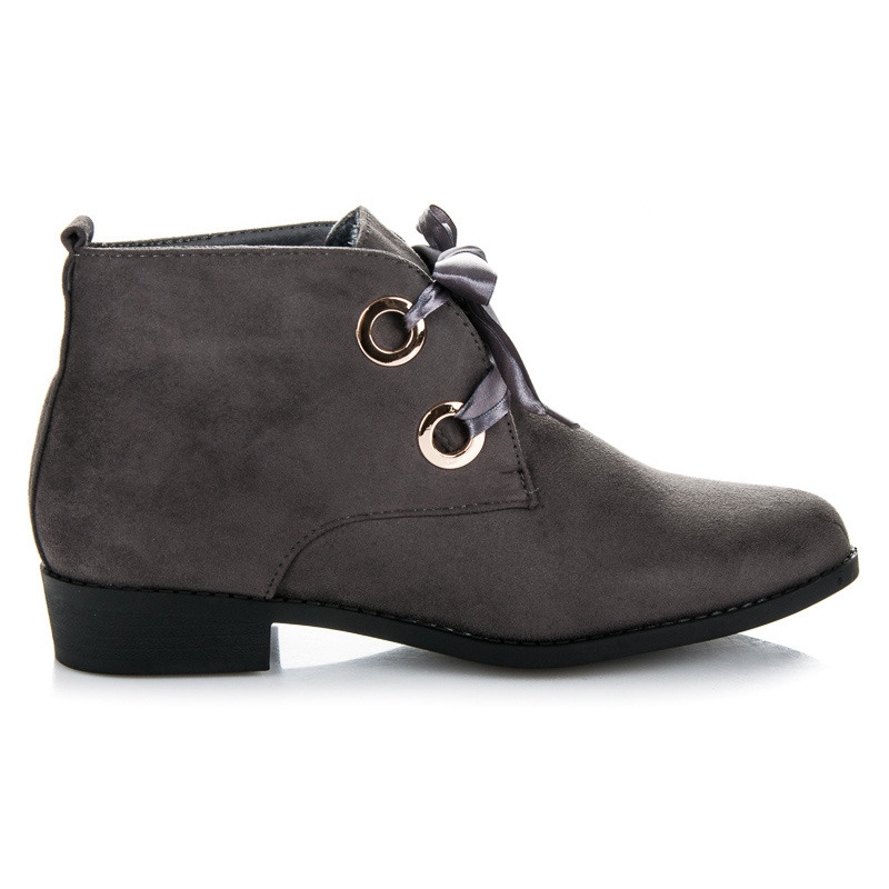 Sem estampa, na clássica cor cinza, estes botins combinam perfeitamente com uma variedade de estilos - desde jeans a vestidos. Uma palmilha confeccionada em um material diferenciado garante conforto a cada passo, e seu design universal faz com que sejam um ótimo complemento para o guarda-roupa de qualquer mulher.