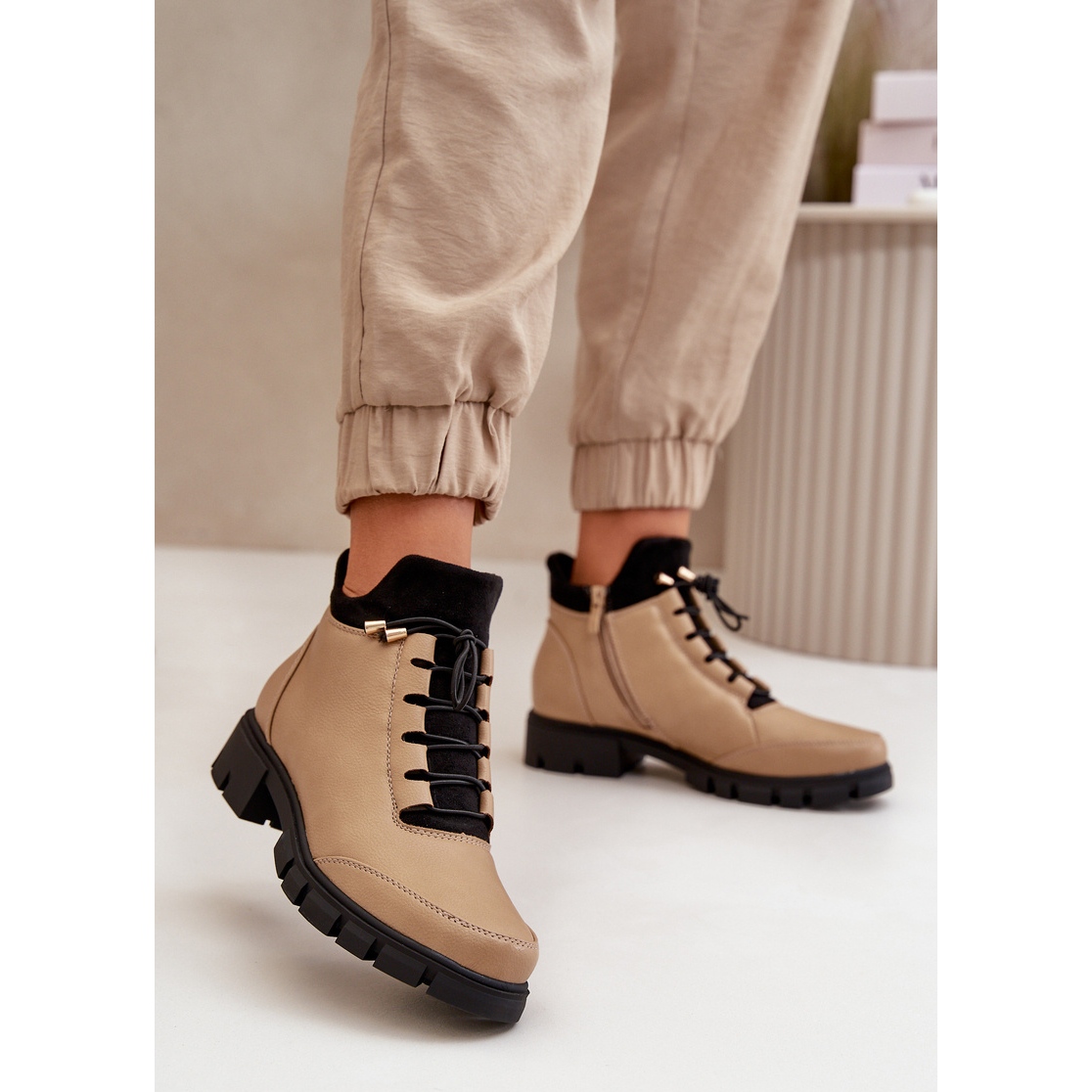 Detalhes: Botas baixas femininas com isolamento em couro ecológico, Bege Erisabelle
