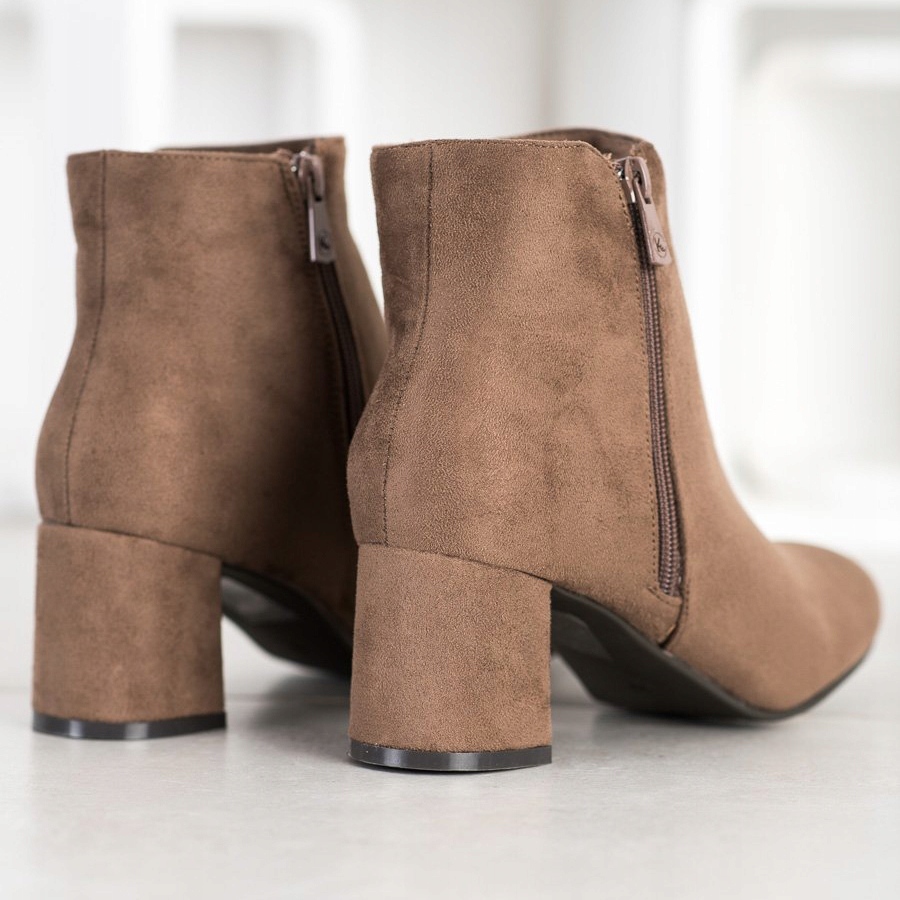 O diferencial desses sapatos é a biqueira redonda e o salto embutido, o que os torna confortáveis para usar o dia todo. O salto bloco de 6 cm de altura acrescenta a altura certa sem sacrificar o conforto - perfeito para os longos dias de outono e inverno. A altura superior é de 10-11 cm, o que significa que as botas abraçam lindamente o tornozelo, acrescentando elegância a qualquer look.