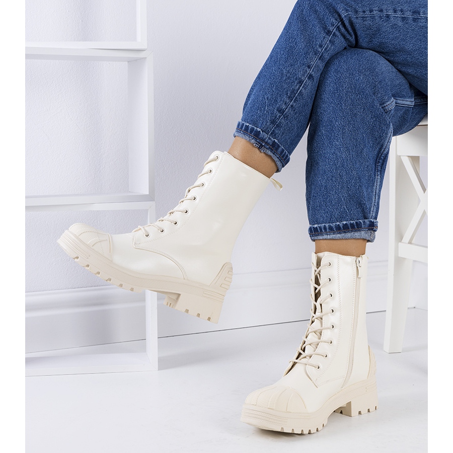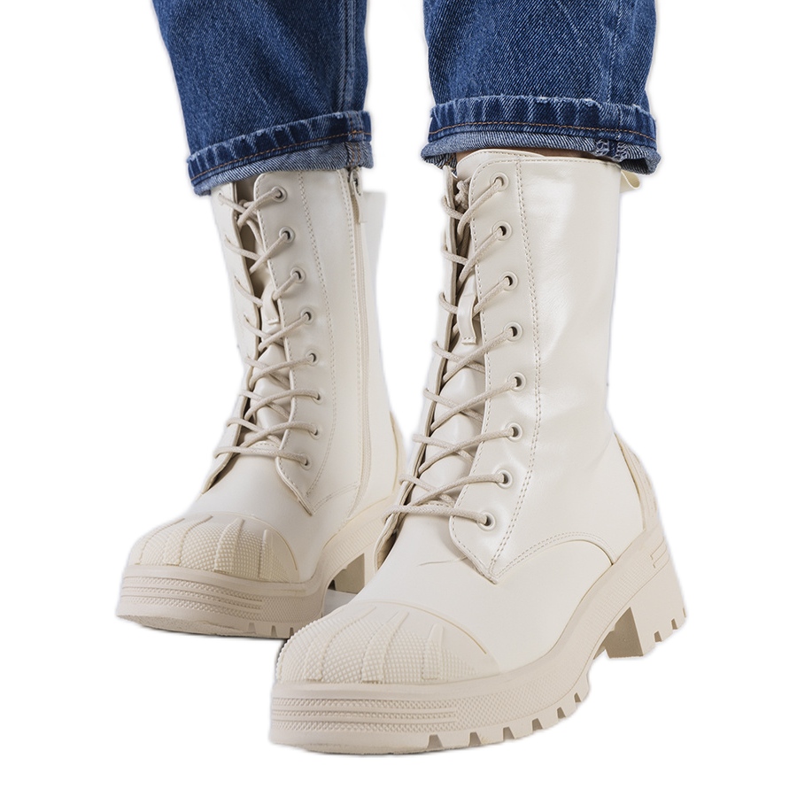 Descubra elegância e conforto com os botins Tergaron bege, a escolha perfeita para os dias de outono e inverno. Estas elegantes bolsas de trabalho, feitas de couro ecológico de alta qualidade, combinam design moderno com soluções práticas. A parte superior até o tornozelo não só garante uma ótima aparência, mas também oferece proteção contra o frio.