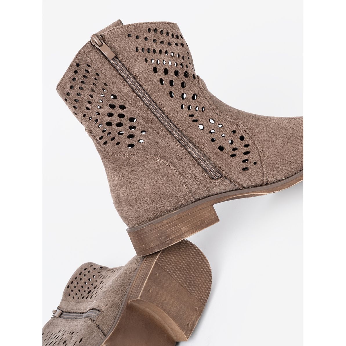 Essas botas casuais com um salto plano de 3 cm de altura são caracterizadas por uma estrutura de trabalho aberto da moda, que lhes dá uma aparência original e moderna. Seu tamanho superior de 26 cm e uma altura de 17 cm se adaptam perfeitamente às pernas, enquanto oferecem liberdade de movimento.