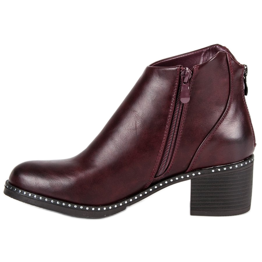 Os botins de salto alto Vinceza bordô são a escolha perfeita para mulheres que querem combinar o estilo clássico com um pouco de estilo original. Estes sapatos elegantes na cor bordô da moda são feitos de couro ecológico, o que os torna ecologicamente corretos e extremamente confortáveis de usar.