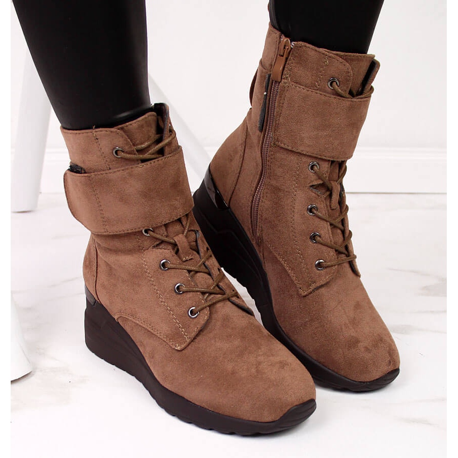 Descubra as botas de cunha femininas exclusivas da Jezzi, que serão o complemento perfeito para qualquer estilo! Estas botas castanhas, isoladas com um agradável pêlo, vão proporcionar não só conforto, mas também um estilo único nos dias mais frios. Fabricados em couro camurça ecológico de alta qualidade, são duráveis e elegantes.