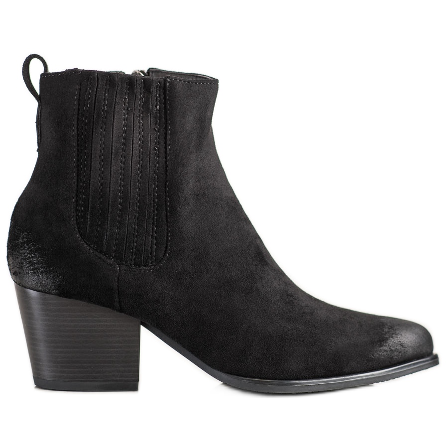 Aqui está a combinação perfeita de estilo e conforto - botins pretos casuais VINCEZA, que certamente complementarão qualquer estilo outono-inverno. Feitos de imitação de camurça de alta qualidade, têm um aspecto elegante e intemporal. O seu design minimalista e sem padrões torna-os adequados tanto para looks do dia a dia como para looks mais formais.
