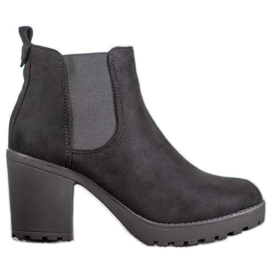 Descubra conforto e estilo extraordinários com as botas Chelsea de salto alto SHELOVET! Estes elegantes botins pretos foram cuidadosamente confeccionados em couro camurça ecológico, o que não só lhes confere um visual luxuoso, mas também se preocupa com o meio ambiente. Um salto bloco estável de 8 cm e uma pequena plataforma na frente garantem conforto mesmo durante um longo dia de movimento.