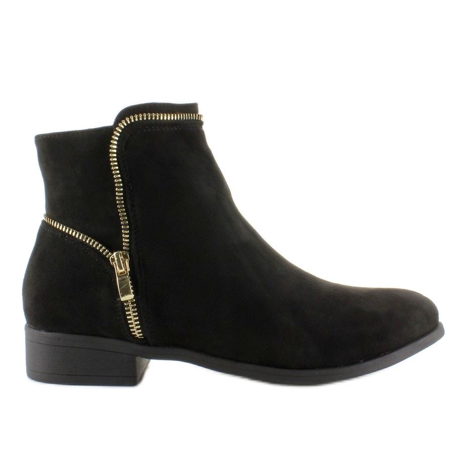 Descubra elegância e conforto com as botas AB02-20 Black Chelsea, que são a escolha perfeita para toda mulher moderna. Estas elegantes botas de camurça com corte clássico distinguem-se por um zíper dourado costurado decorativamente, que lhes confere um caráter único. Graças ao segundo zíper interno, calçar os sapatos é rápido e fácil, o que os torna perfeitos para qualquer ocasião.