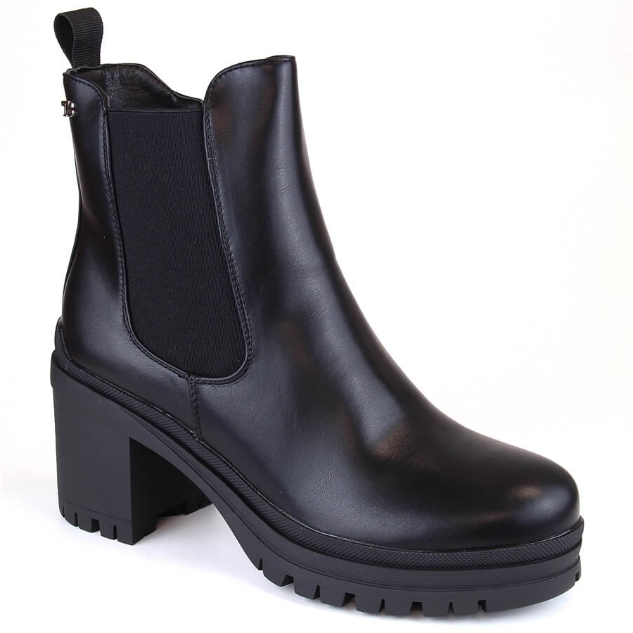 Detalhes: Botas Chelsea femininas com salto alto e plataforma, isoladas pretas, T.Sokolski preto