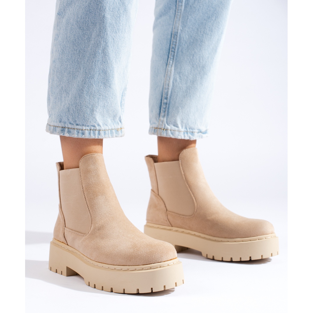 Detalhes: Botas Chelsea femininas de camurça bege Shelovet
