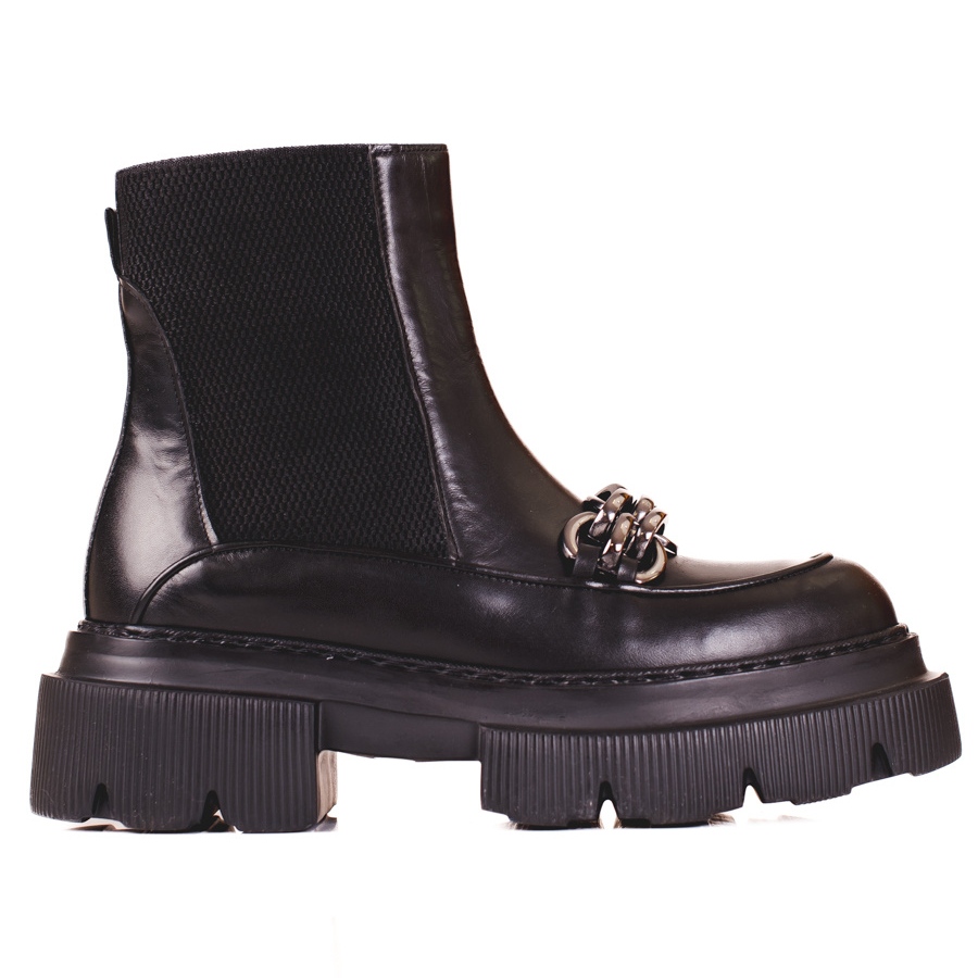 Detalhes: Botas Chelsea femininas de couro na plataforma Shelovet preto