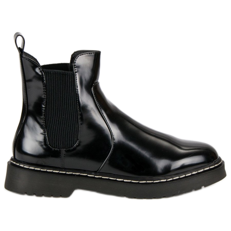 Detalhes: Small Swan Botas Chelsea laqueadas preto