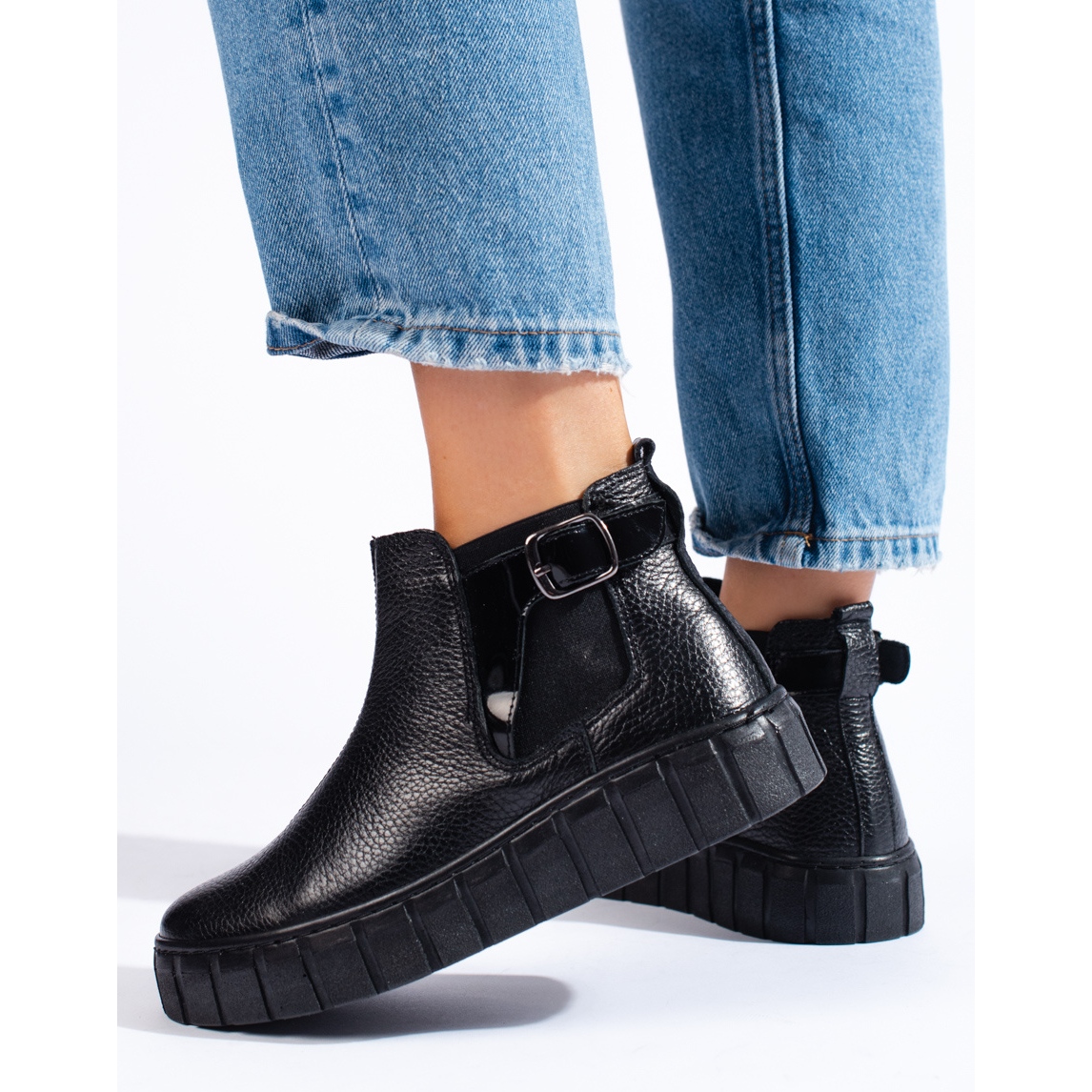 T.Sokolski T.Sokolski Botas Chelsea pretas de senhora na plataforma Sokolski, confecionadas em pele natural preto