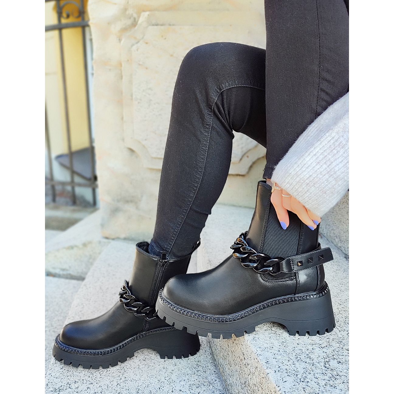 - Modelo: Botas Chelsea femininas com corrente removível