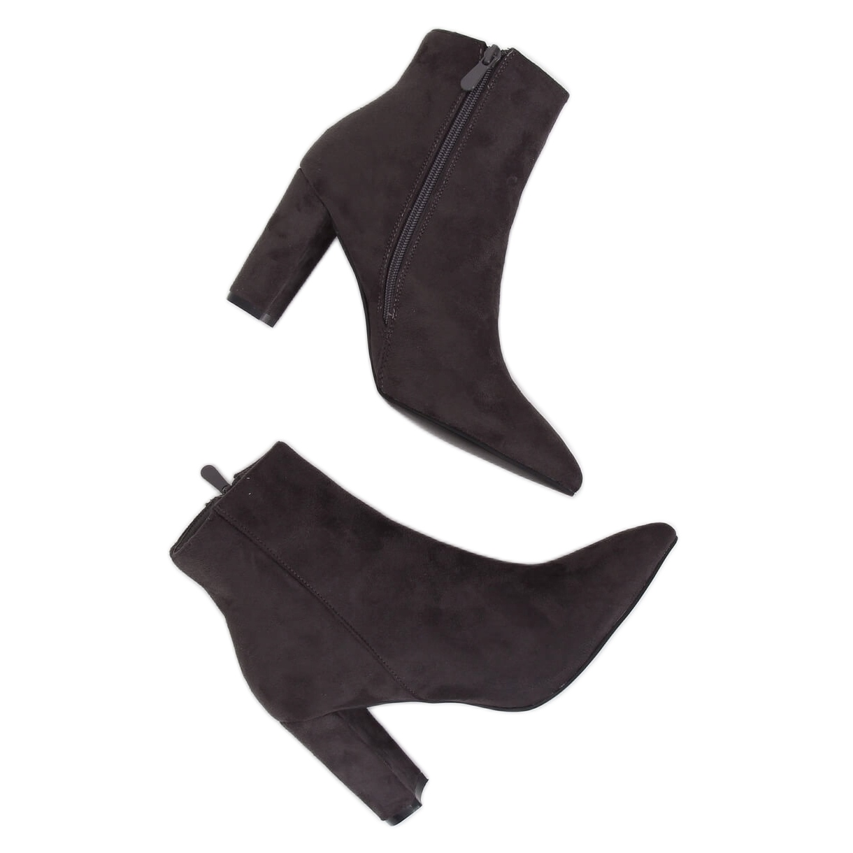 Botins cinza de salto alto NS039P Cinza é uma escolha elegante para mulheres que apreciam calçados clássicos e cheios de estilo. A sua ponta delicada confere-lhes um carácter subtil e elegante, ao mesmo tempo que alonga lindamente as pernas graças ao salto de 9 cm de altura. Fabricados em camurça ecológica de alta qualidade, estes botins não são apenas estéticos, mas também ecológicos.