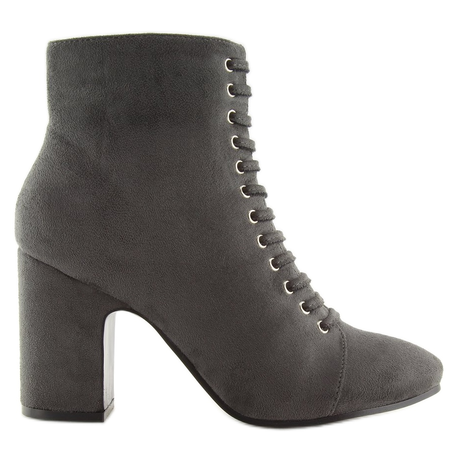 Os botins cinza de salto estável SP03 são a escolha perfeita para todas as mulheres que valorizam elegância e conforto de uso. Estas botas estilosas com salto de 9 cm combinam um design clássico com toques modernos. Possui laço sutil na frente, que confere um caráter feminino ao mesmo tempo que garante um ajuste perfeito ao pé.