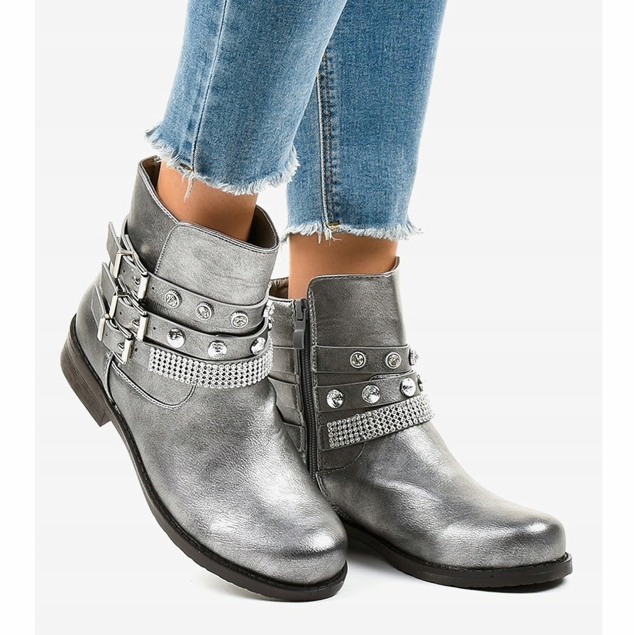 Descubra os botins cinzentos LL179 que combinam elegância e conforto. Estes sapatos exclusivos com sola plana e antiderrapante foram criados para mulheres que querem se destacar em todas as situações. Sua cor cinza e prata certamente atrairá a atenção, e ricas decorações em forma de strass e tachas irão adicionar um pouco de loucura ao seu look.