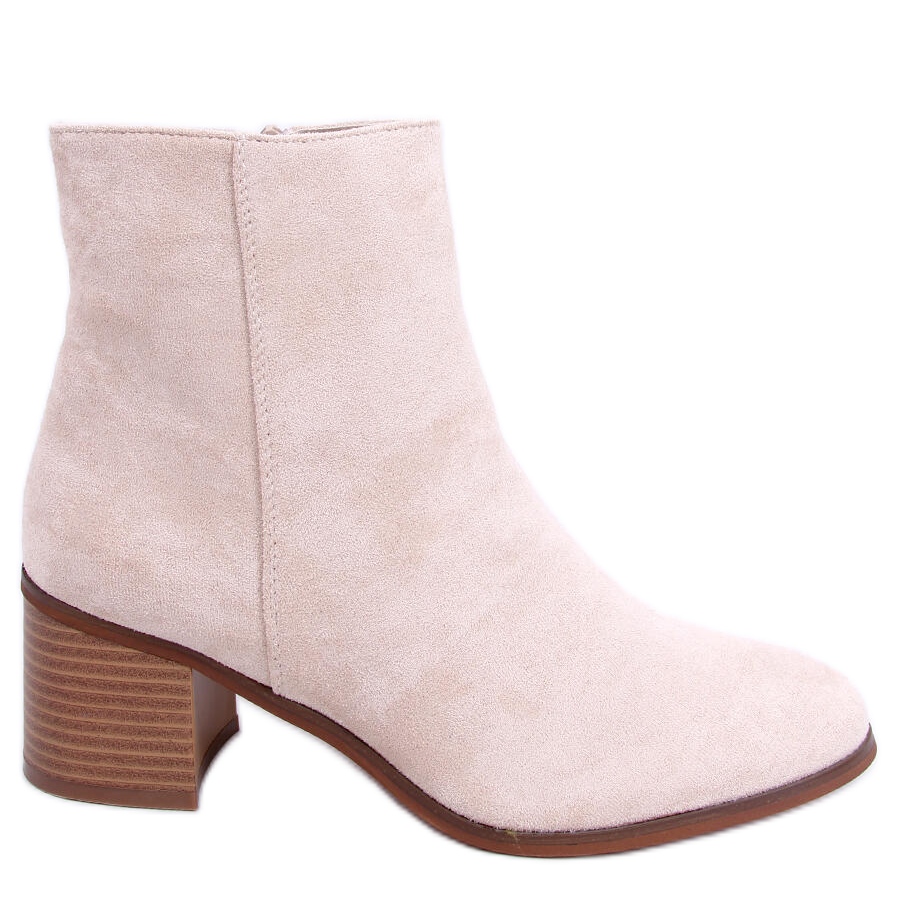 Estes botins bege são confeccionados em camurça ecológica, que além de conferir um visual atraente, é ecologicamente correto. O material externo macio garante um bom ajuste ao pé e ao mesmo tempo oferece uma aparência elegante e suave, sem decorações adicionais. O forro de pele delicado na parte interna do calçado confere aconchego e proporciona isolamento térmico, o que é inestimável em dias frios.