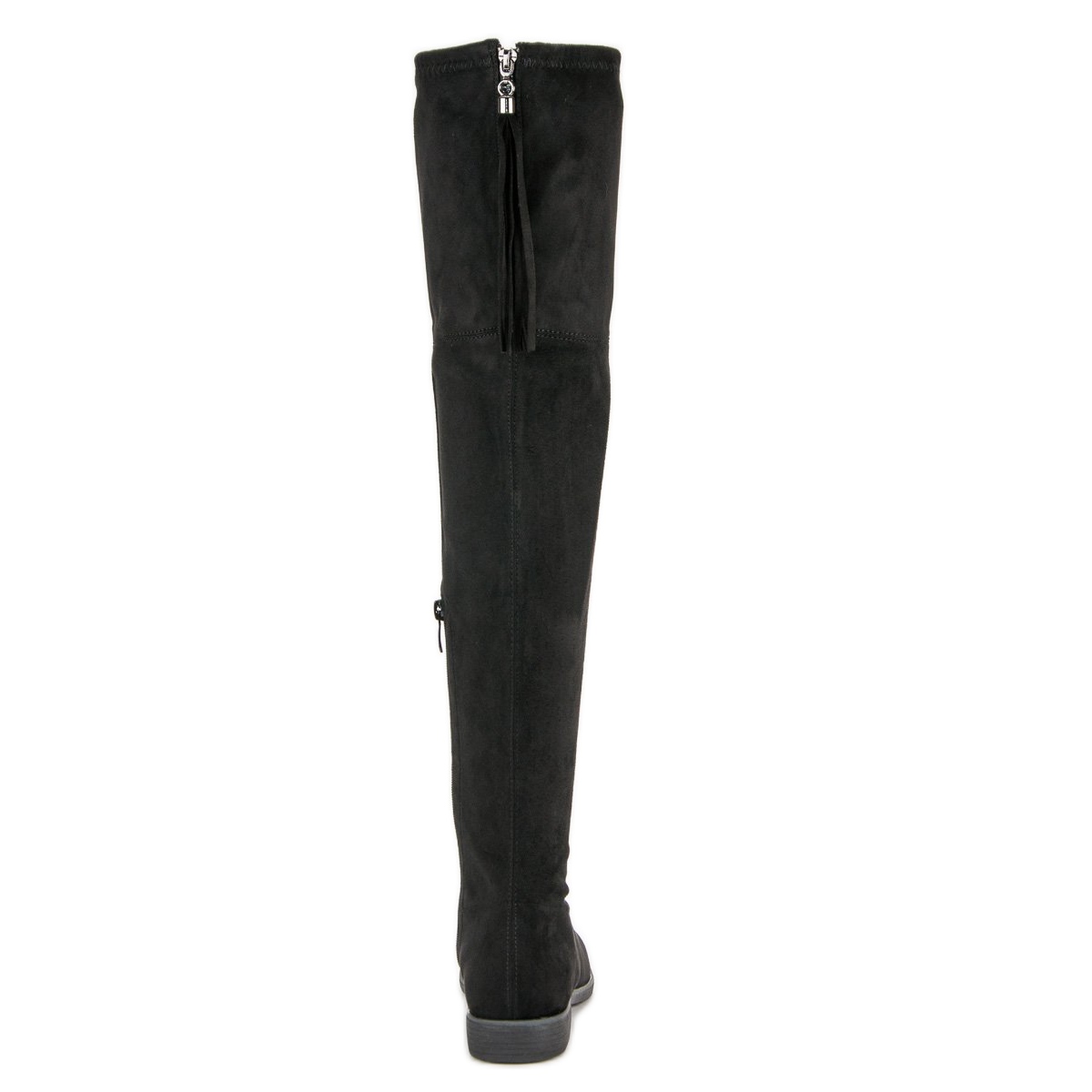 Conheça as clássicas botas acima do joelho da conceituada marca R'S, que se tornarão um elemento indissociável do seu guarda-roupa. Estas elegantes botas pretas são confeccionadas em couro camurça ecológico de alta qualidade, o que lhes confere não só um visual estiloso, mas também conforto de uso.