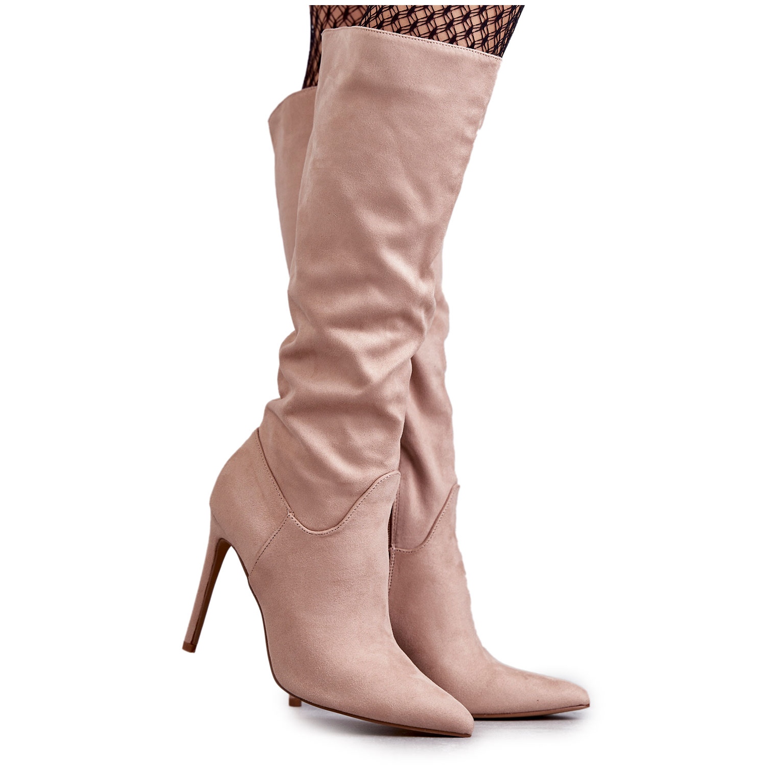 Detalhes: Botas Clássicas de Salto Alto de Camurça Bege Ameya