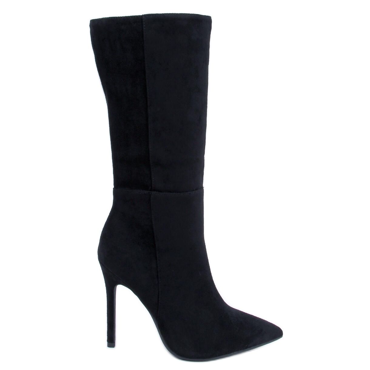 Detalhes: Botas clássicas de salto alto de camurça Marissa Black preto