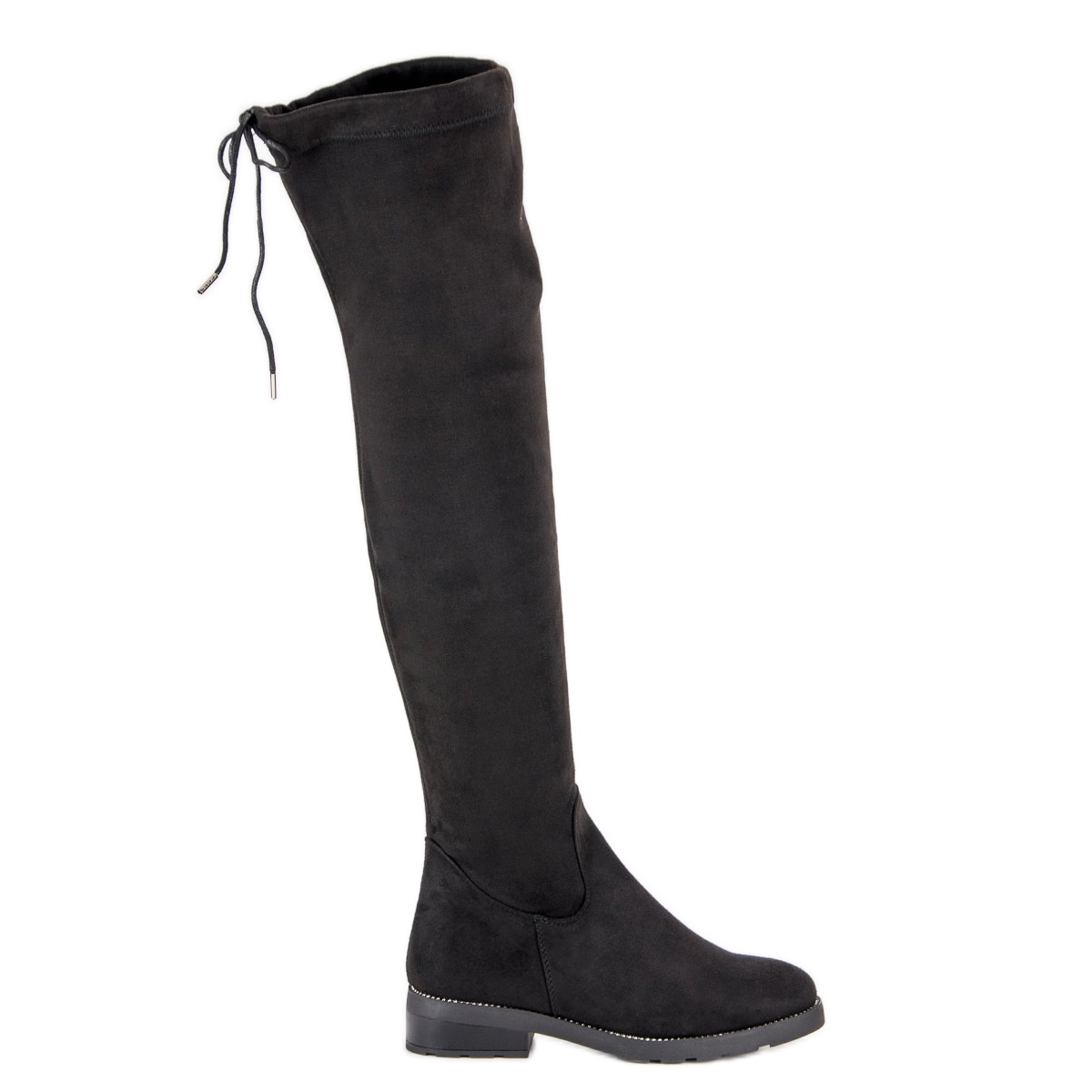 Graças às suas linhas simples e à falta de padrões, são uma excelente base para muitos estilos - do casual ao mais elegante. A parte superior alta acima do joelho confere-lhes um carácter único e a biqueira redonda garante conforto durante todo o dia.