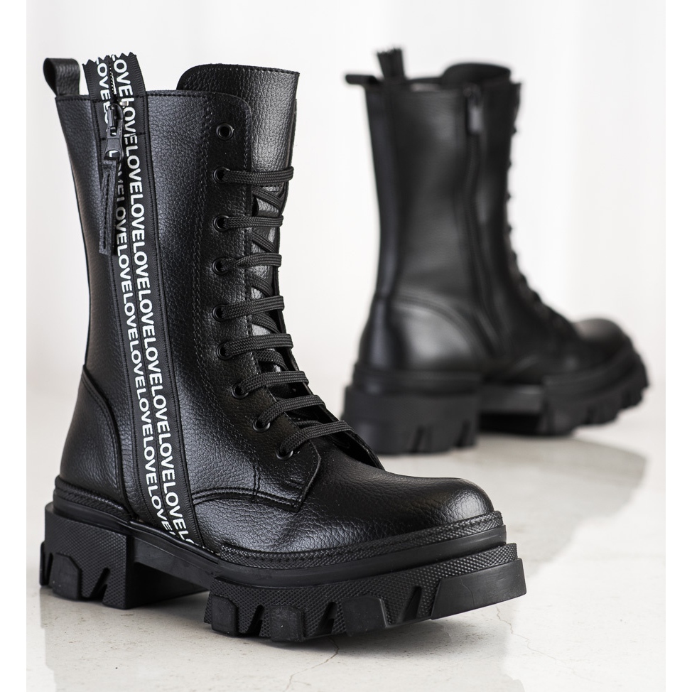 Descubra moda e conforto em um só lugar, graças às botas SHELOVET bovver confeccionadas em couro ecológico Love na clássica cor preta. Estes sapatos femininos são a escolha perfeita para o uso diário, combinando perfeitamente com o estilo casual, rock e fashion.