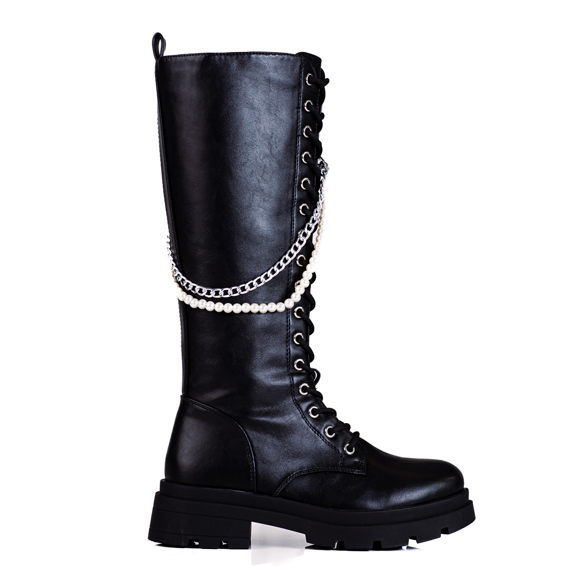 SHELOVET Botas com atacadores para mulher com pérolas Shelovet preto