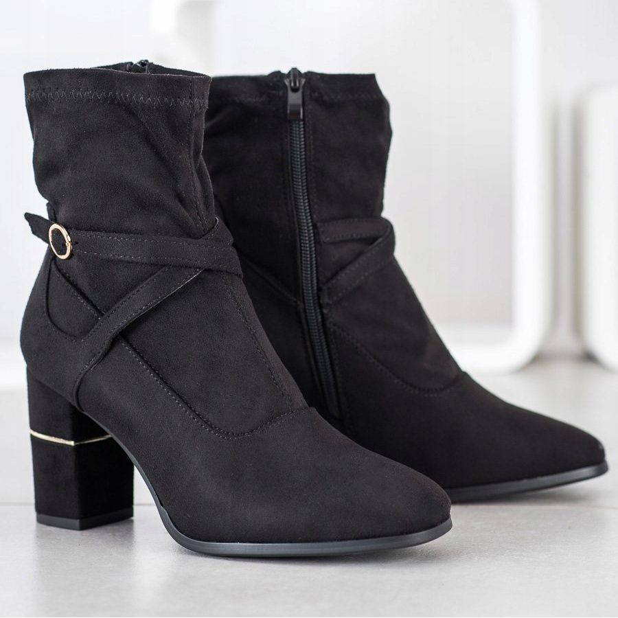 Descubra elegância e conforto com botins Goodin com aplicação dourada! Estes botins pretos são confeccionados em pele camurça ecológica, o que os torna não só elegantes, mas também ecológicos. Um zíper lateral facilita a colocação e a retirada, e a tira decorativa entrelaçada com fivela dourada adiciona um caráter chique e único.