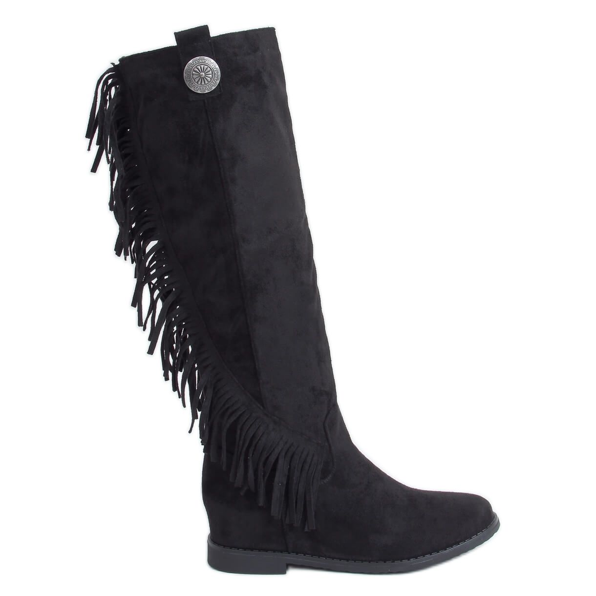 Detalhes: Botas com franjas, cunha oculta preto ST-28P Preto