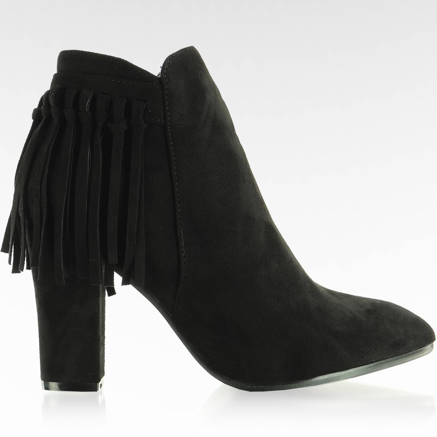 Botins femininos elegantes e ao mesmo tempo confortáveis, perfeitos para o uso diário e ocasiões mais formais. Confeccionado em couro camurça ecológico, com franjas sutis decorando a parte de trás do cabedal - esse detalhe confere ao calçado um caráter fashion e um toque levemente boho. Os dedos bem torneados e amendoados estreitam visualmente o pé e um prático zíper no interior facilita a colocação rápida.