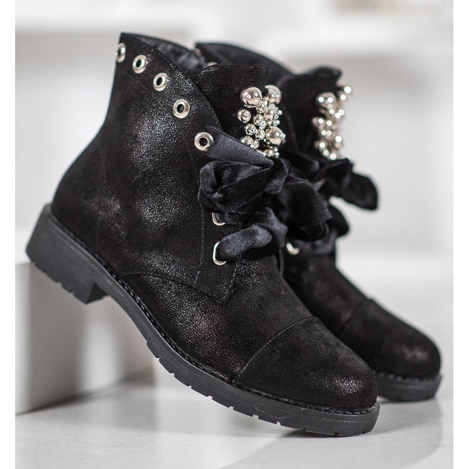 Detalhes: Bella Paris Botas Com Laço Decorativo preto