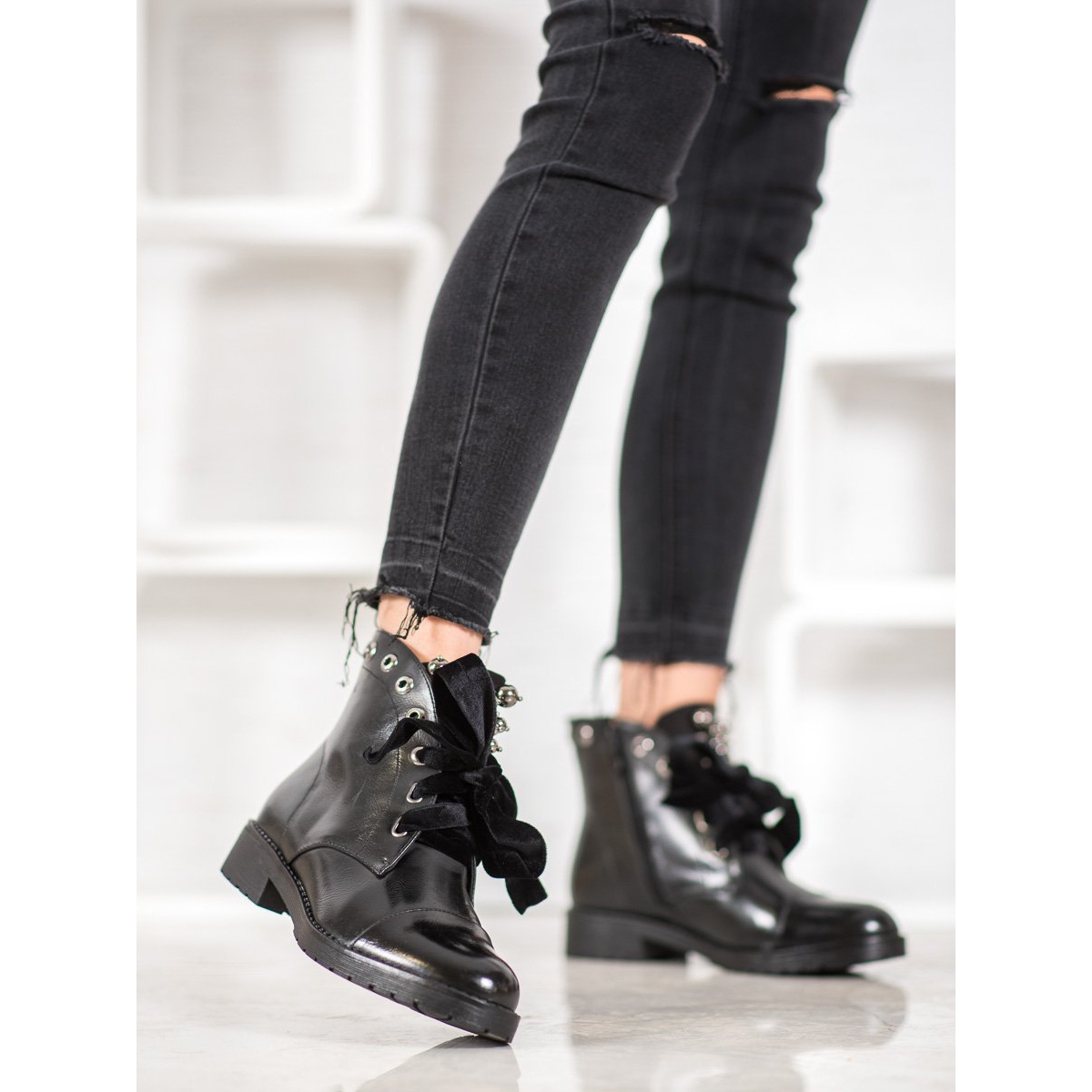 Descubra estilo e elegância únicos com botins Bella Paris com laço decorativo em preto. Projetados pensando nas mulheres modernas, esses botins combinam estilo clássico com detalhes modernos. Confeccionados em couro ecológico de alta qualidade, caracterizam-se não só pela estética, mas também pela durabilidade.