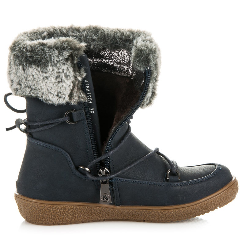 Botas elegantes e confortáveis para meninas que combinam um look fashion com soluções práticas. Confeccionado em couro ecológico de alta qualidade, com pelo macio na parte superior, que confere charme e proporciona isolamento adicional. O fecho com cadarço permite um ajuste preciso ao pé e a sola sólida garante um apoio seguro em superfícies escorregadias.