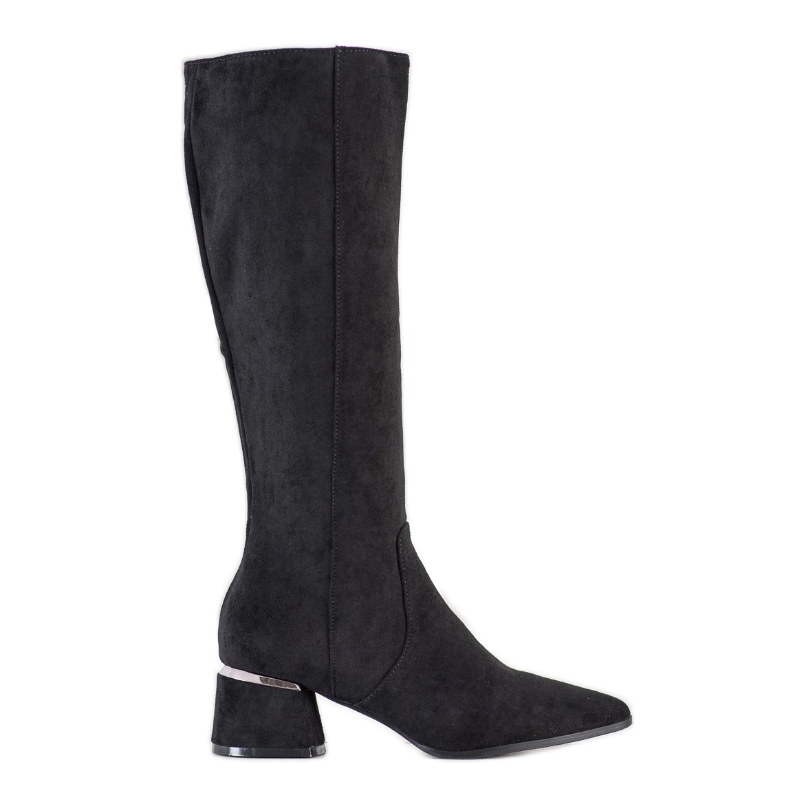 O salto em forma de poste estável de 5,5 cm de altura torna-os confortáveis e ao mesmo tempo acrescenta elegância a qualquer estilo. O cabedal na altura do joelho enfatiza as pernas e combina tanto com um vestido elegante quanto com um conjunto casual com jeans. O zíper facilita a colocação e o calcanhar reforçado e embutido oferece suporte adequado.