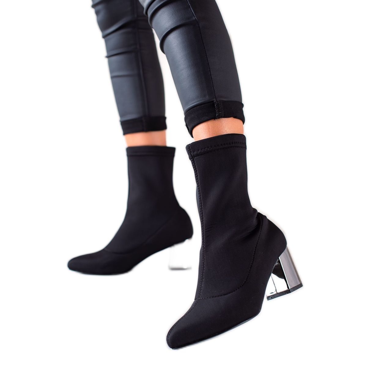 Descubra a elegância e o conforto dos botins slip-on TRENDI com salto prateado. Estes botins pretos combinam perfeitamente com as tendências atuais, combinando o estilo casual com a elegância, o que os torna a escolha perfeita para diversas ocasiões - desde os passeios do dia a dia até aos passeios noturnos.
