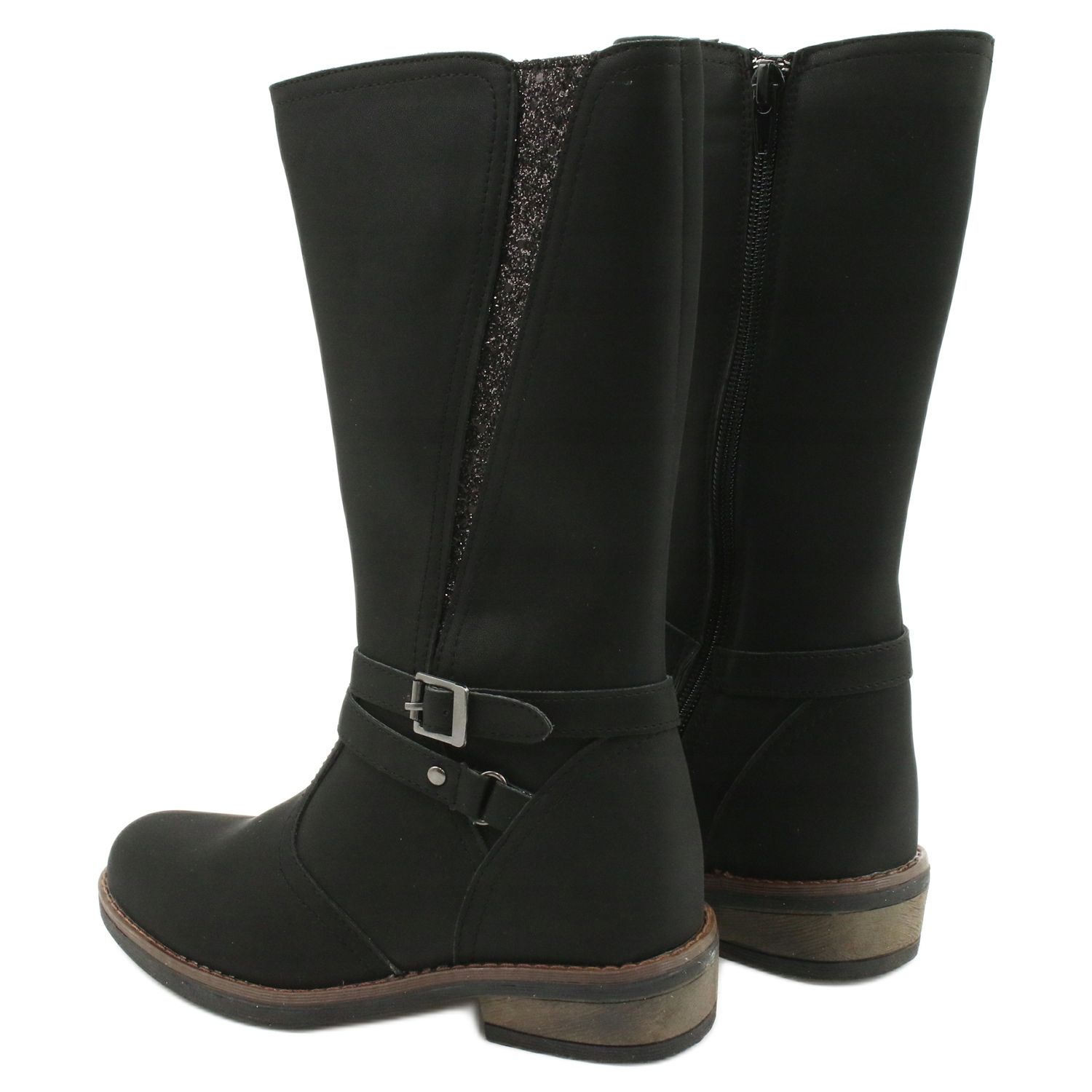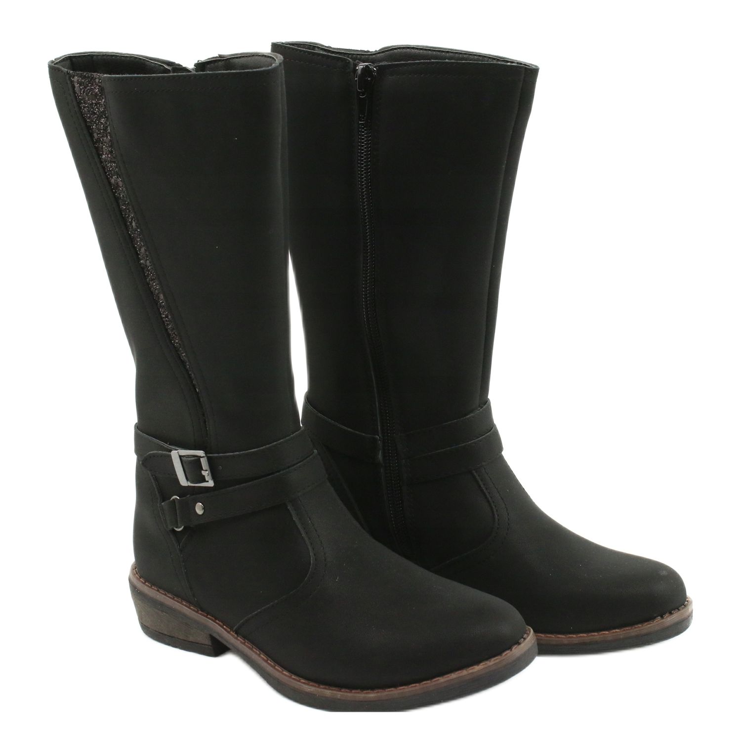 Apresentamos botas compridas americanas pretas GC24/20 com brilhos da conceituada marca American Club, que farão as delícias de qualquer pequena fashionista! Estas botas femininas são confeccionadas em couro ecológico de alta qualidade, o que as torna não só elegantes, mas também amigas do ambiente.