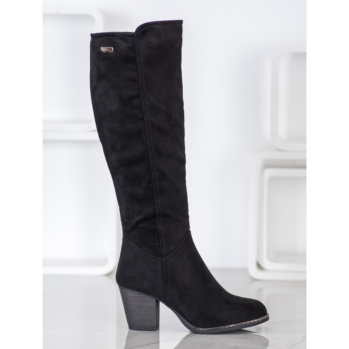 Descubra elegância e conforto com botas de salto alto do fabricante J. Star. Estas elegantes botas pretas são a escolha perfeita para mulheres que desejam combinar o estilo clássico com o design moderno. Confeccionados em couro camurça ecológico de alta qualidade, chegam até o joelho, o que os deixa lindos tanto no estilo casual quanto no mais elegante.