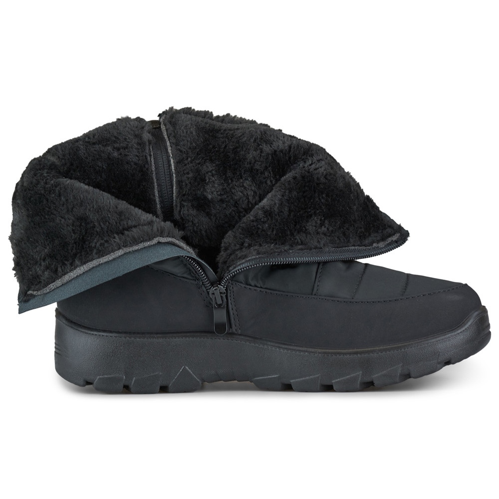 Botas de inverno confortáveis - botas de neve grosamente isoladas, pretas, com um zíper