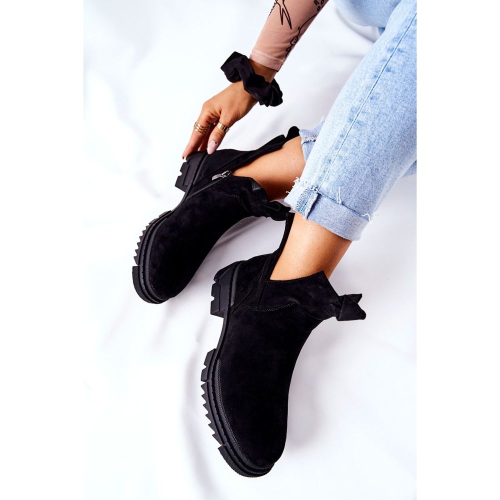 Descubra moda e conforto num dos últimos modelos de botins da POTOCKI! Botins pretos com zíper são a escolha perfeita para qualquer mulher elegante. Fabricados em camurça ecológica de alta qualidade, oferecem não só um visual elegante, mas também um prazer de usar. O seu interior, isolado com uma manta para sapatos, torna-os perfeitos para os dias mais frios, proporcionando calor e conforto.