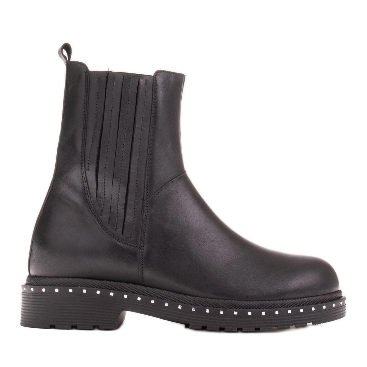 As botas de Costanza elegantes e práticas são uma proposta para mulheres que valorizam um corte clássico com um pouco de personagem do rock. Feito de couro de grão, decorado com pregos prateados e strass, combine durabilidade com uma aparência elegante. O interior de feltro isolado fornece conforto térmico nos dias mais frios, e o zíper confortável do lado facilita a instalação.